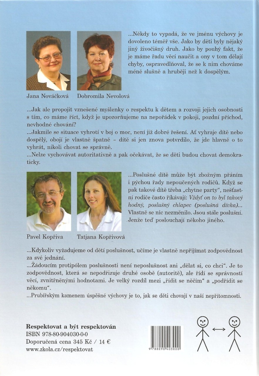 Aj keď táto kniha nie je z dielne vydavateľstva Peoplecomm, nevyhnutne dopĺňa problematiku témy prednášky. Týka sa práve výchovy, výchovy slobodných ľudí, či už detí alebo dospelých, pretože výchova je proces celoživotný. Mimoriadne inšpiratívna, aj keď nenápadne vyzerajúca kniha z dielne českých autorov pedagógov-psychológov, ktorí poznajú našu mentalitu a náš jazyk. Okrem knihy usporadúvajú autori kurzy pre rodičov a učiteľov. O kurzy je mimoriadny záujem, najbližší voľný termín je až v roku 2014.
